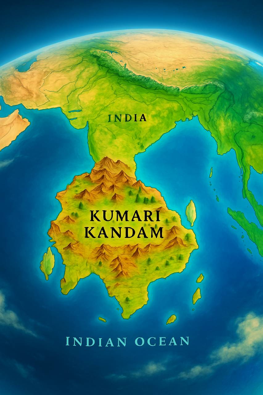 Known in Tamil legends, Kumari Kandam was a vast continent south of India that housed a golden age civilization. Some believe its knowledge and people now reside within Inner Earth realms connected to Agartha.