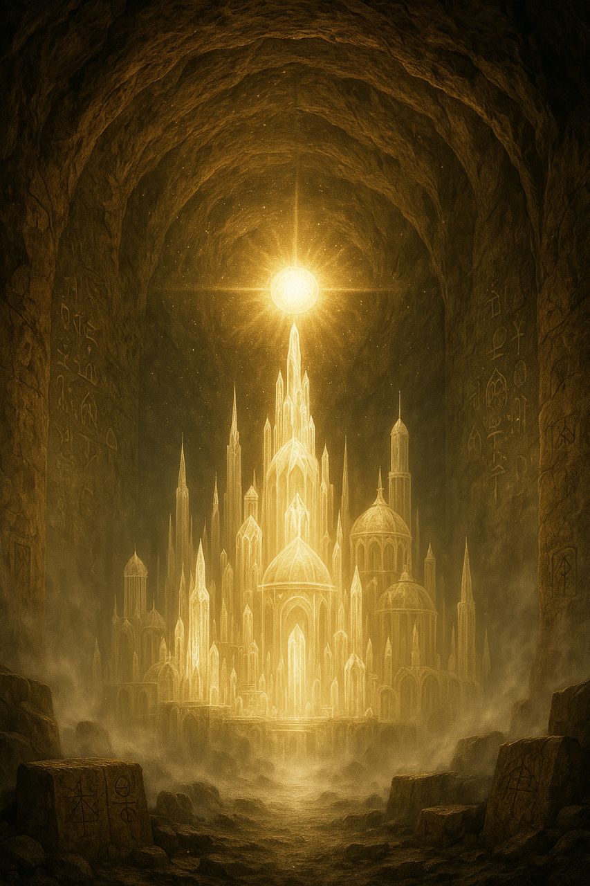 At the heart of Agartha, many believe, lies a radiant Inner Sun—not fiery like our outer sun, but an energetic, life-giving source that illuminates and nourishes the underground world. This sun sustains flora, fauna, and the high-frequency environments of the Agarthan cities.