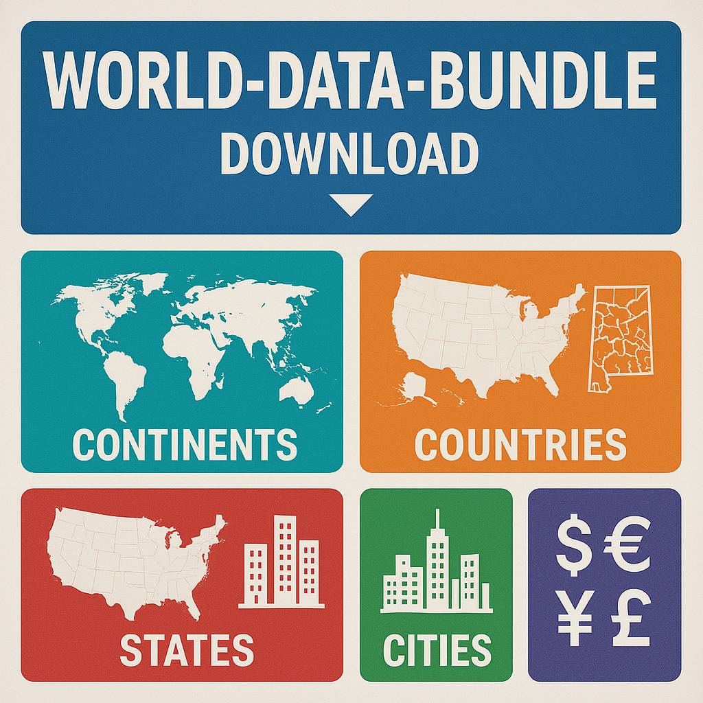 World Data Bundle — Full Continent, Country, State, City & Currency Dataset